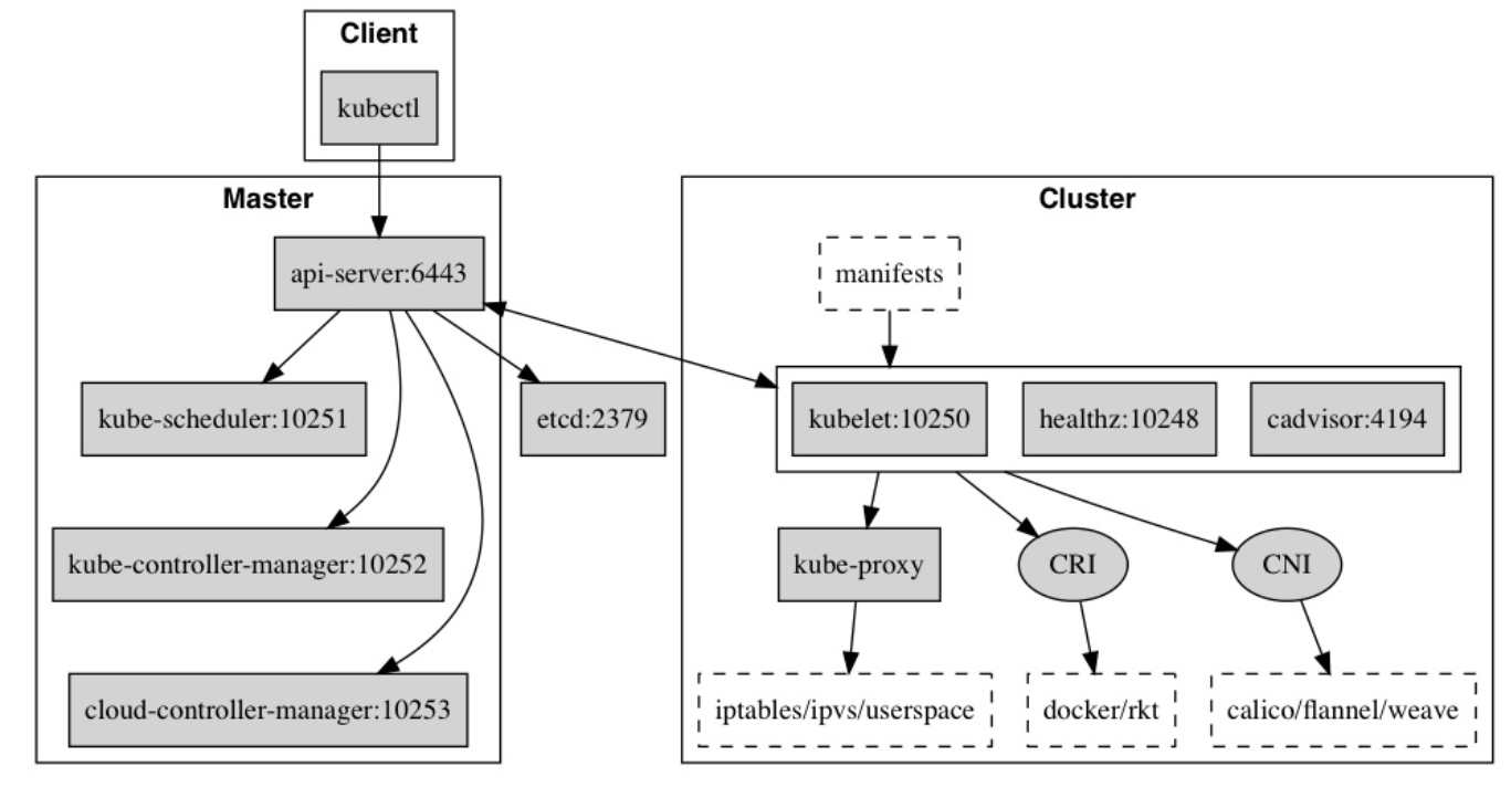 - kubelet 负责容器的生命周期,同时也负责Volume(CVI)和网络(CNI)的管理;